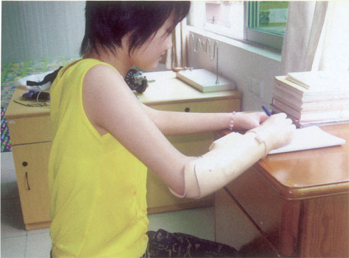 肌电控制上肢假肢 :能量来自于体外。每块肌肉收缩的生物化学过程都产生一个能在皮肤上测量的生物电。这些信号用于控制假肢。由于采用了智能控制技术,完成不同的动作和抓取功能变得十分简便。这是日常活动的真实进步。
