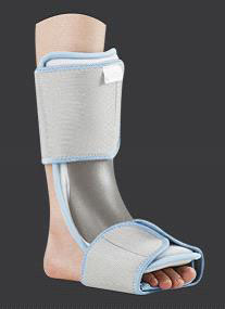 此产品适用的症状 夜用脚护托 淘宝链接:http://shop63707345.taobao.com 适用症: (1)脚背拉伤、扭伤以及术后康复; (2)是理想的足底筋膜炎,脚踝扭伤和跟腱炎的护理产品,低轮廓设计,增强病人的穿戴舒适性。 (3)适合足下垂患者夜间睡眠时使用。 此款夜用护托可以摆脱各种支具的束缚,避免足跟部压迫,通过对小腿与足部的连接固定,达到矫治的目的。此产品可以代替石膏拖固定,尤其是在晚上睡觉的时候,去除石膏拖改用这个产品,可以达到矫正固定又方便舒适的双重目的。