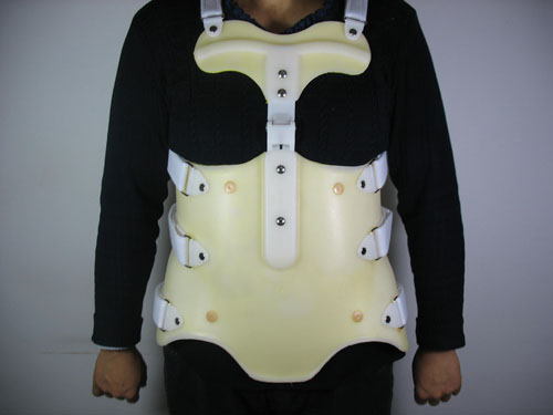 ☆、通过搭扣将前后胸压片有效连接,稳定胸椎上段。
